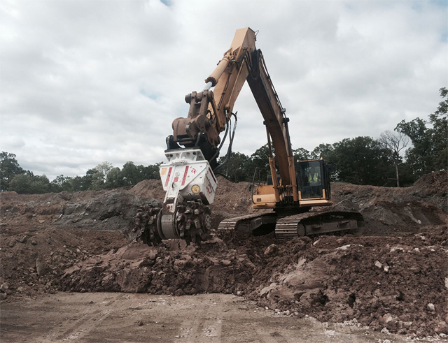 Antraquip Soil Mixers are attachments for conventional excavators. The Soil Mixers are easily mounted on an excavator with pin mounts. Antraquip Soil Mixers are powered by the excavator's hydraulic system. Attaching , a Soil Mixer converts the excavator into a powerful and versatile mixing tool. The mixing drums penetrate and mix a variety of material in place or insitu. Materials can be mixed anywhere the excavator can go, utilizing the excavator's mobility and articulation to reach difficult or soft areas. Binders or chemical agents are delivered to