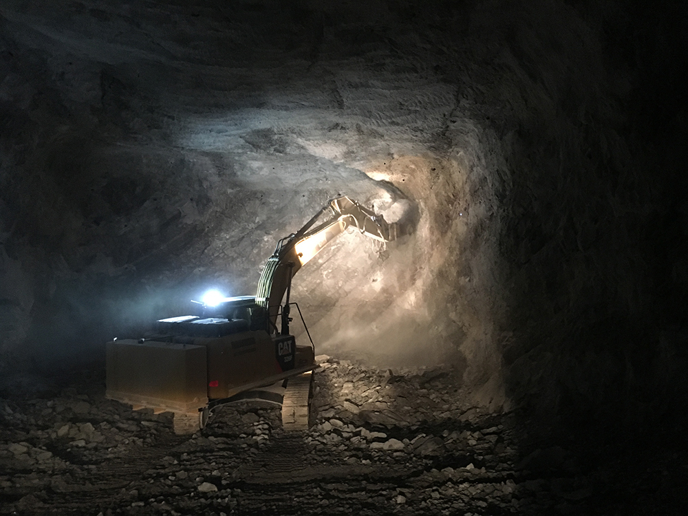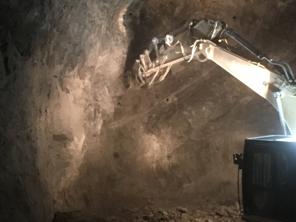 AQ-4 Rotary Scaler on CAT336 Underground Limestone.