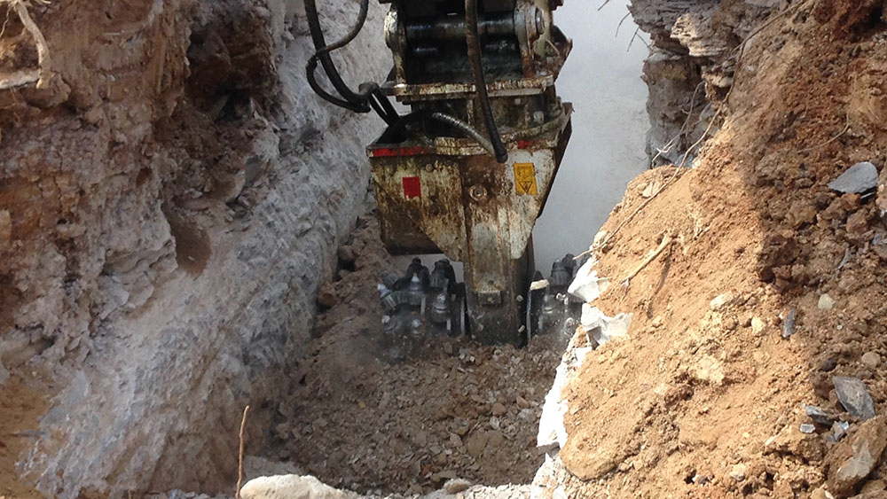 AQ-4XL Rock Grinder on Hitachi EX470 Trenching 100MPa Limestone outperformed hydraulic breaker.
