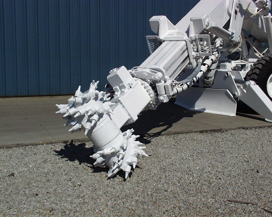 AQ3 Rotary Cutter on special scaling machine with long reach capability. In most types of rock the rotary cutter proves to be more efficient and create a safer environment compared to traditional scaling methods. This scaler was put into operation at a potash mine in Canada.