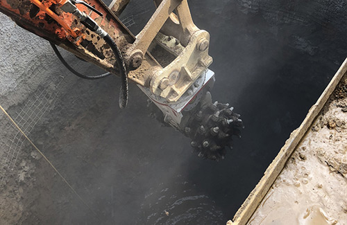 The precision and power of an Antraquip drum cutter not only won the bid for the regional contractor but may have been the only machine that would have worked in the tight city street location without significant additional costs and disruption to the community, if traditional methods were used, including the removal of sidewalks, traffic stoppage, noise and vibration. With a 24’ deep trench needing to be excavated in hard Pennsylvania limestone a hydraulic hammer would have required a nearly 20’ wide cut at the top. With the use of an Antraquip AQ-4XL mounted on Komatsu PC 490 the contractor was… Read More